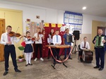 Вихованці гуктка народних інструментів вітали своїх вчителів запальною гуцульською музикою. Були задіяні всі класи у різних видах роботи. Цікаві композиції, стінгазети, веселі пісні, та багато позитивних емоцій. Запрошення зроблені в техніці "Об'ємна паперопластика" з солодкою серединкою.